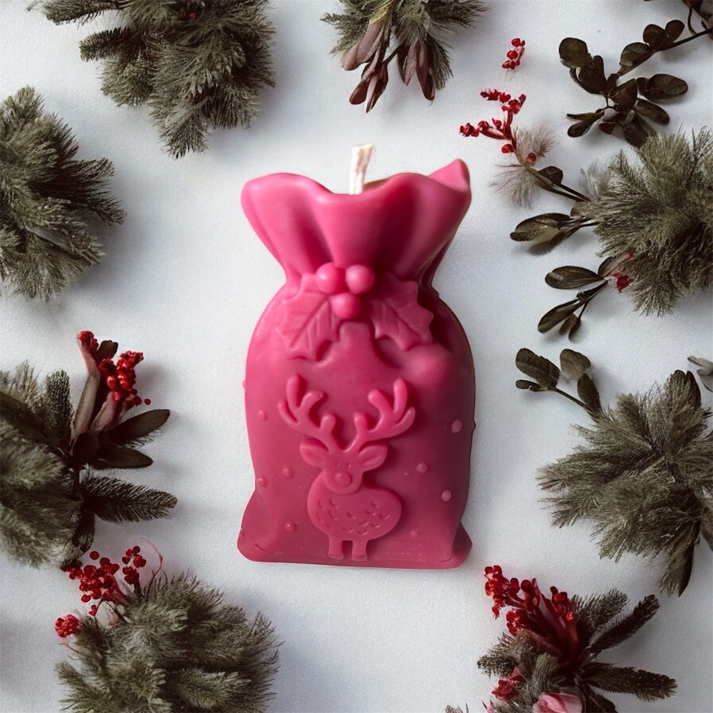 Bougie senteur houx avec sa forme de hotte de Noël, environ 74g